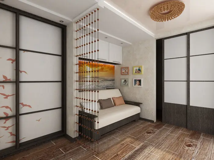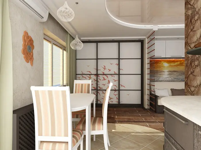 图 5 — 叶夫根尼娅·马格涅茨卡娅的另一个小技巧——厨房-客厅组合门上的飞鸟图案将视线“向上引导”,使眼睛感觉空间比实际更大
