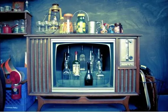 这种用途,一个老式的苏联机顶盒非常合适。去掉显像管(可以安全地丢弃),只保留外壳。你可以保持原样使用,或者再涂上一层清漆。在内部挂一盏平板灯,你的电视柜就完成了。你可以在上面摆放酒杯和鸡尾酒配件。