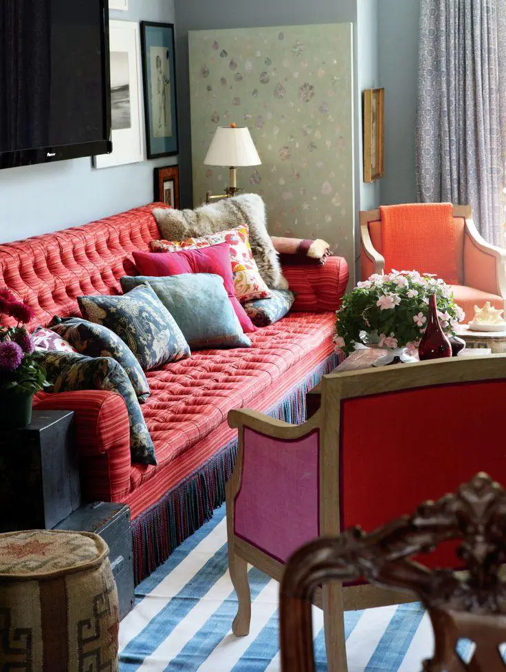 如果相信普遍观点,红色和粉色应该彼此远离,从不混搭。然而实际上,和谐的色彩可以很好地搭配在一起。如果你不喜欢单调的白色室内设计,大胆地加入橙色、绿色或蓝色等鲜艳的点缀色彩,因为一个充满活力的性格值得拥有一个明亮的室内环境!