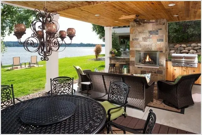 7. 带壁炉和用餐区的烧烤庭院