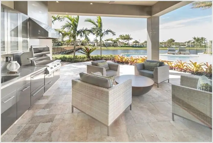 2. 石材岛屿烧烤与合适的用餐空间