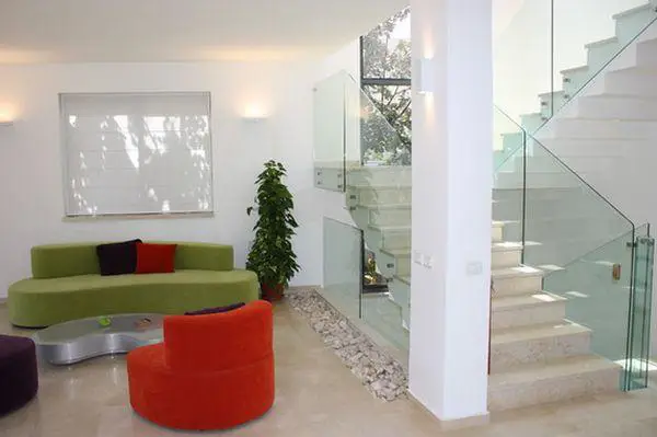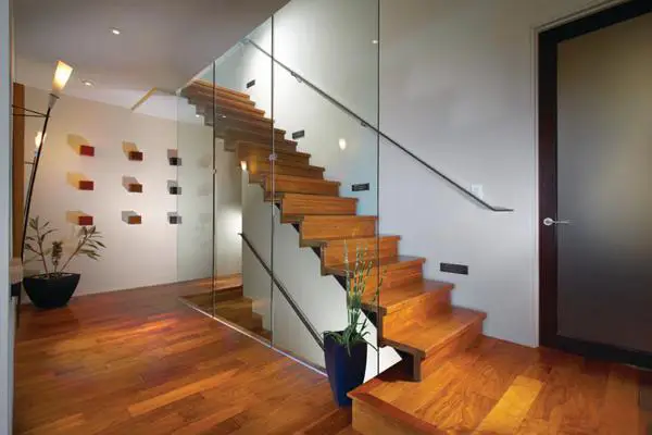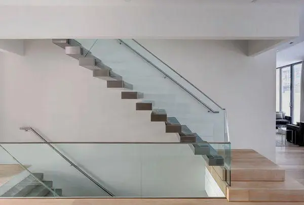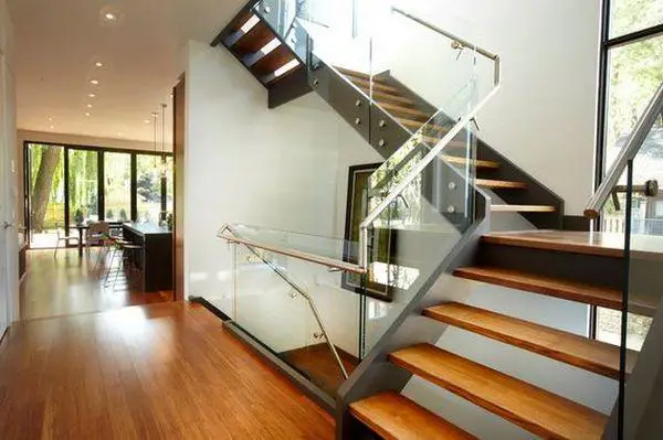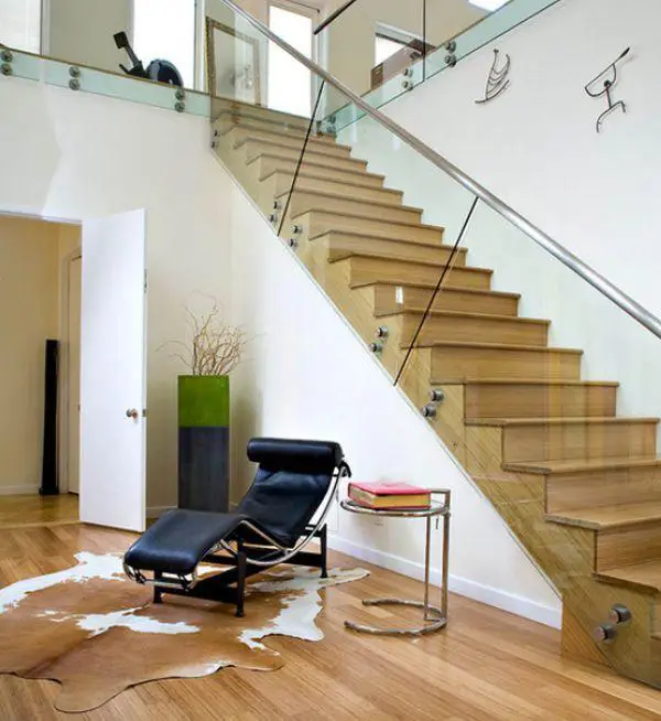 尝试使用玻璃扶手来搭配您现有的楼梯。