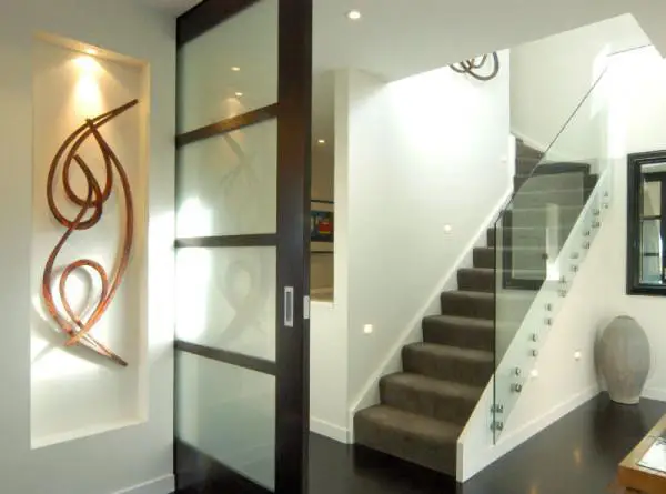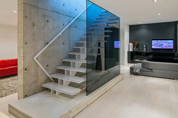 通过玻璃墙体与扶手增强现代楼梯的雕塑美感。