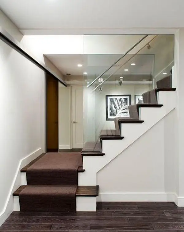 如果希望减少玻璃带来的冷感,可以选择铺设地毯的台阶。