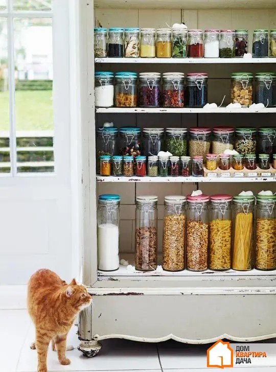 各种颜色和形状的塑料容器和标签清晰的罐子在厨房架子内外都看起来很棒。它们可以提升厨房的外观,取代随机散落的食品包装和容器。