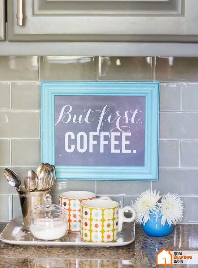主题墙画廊可以美丽地更新厨房的外观。不要局限于传统静物和风景画:尝试悬挂旅行中带回的装饰盘子、格式化为艺术作品的积极语录,或从瓶盖中创建图案或标语。