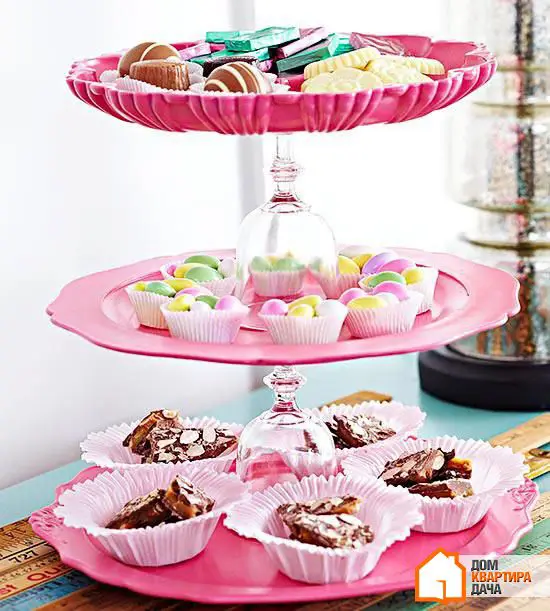 如果你厌倦了你的吊灯,试试更换灯罩。你可以更新不仅墙面,还可以更新厨房柜门或开放式架子背面的壁纸。使用盘子和玻璃杯,你可以轻松制作一个多层次的甜点托盘。