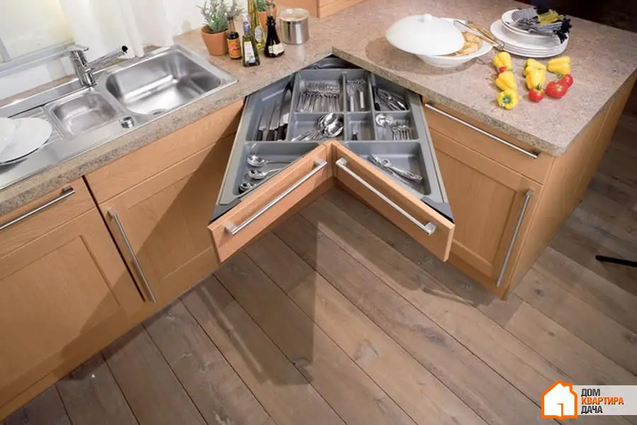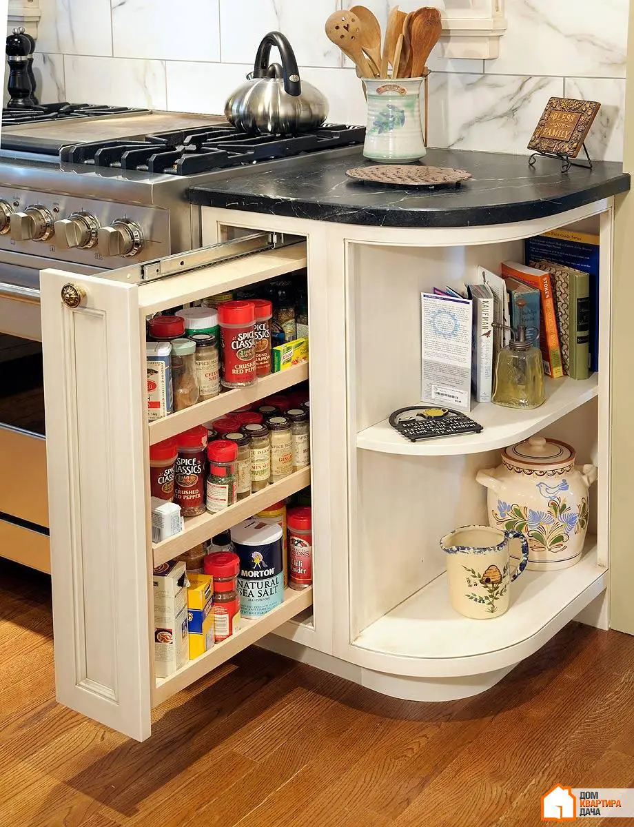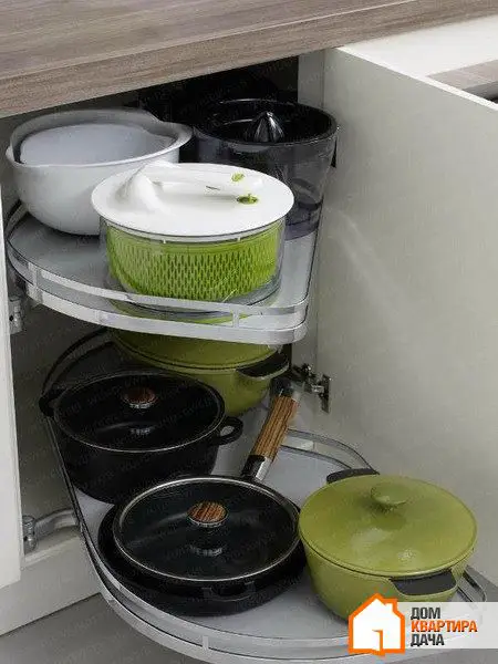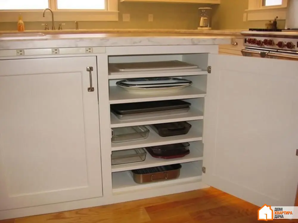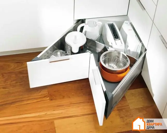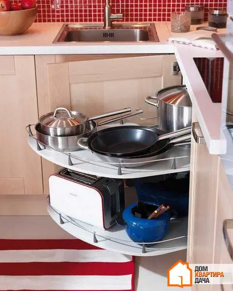 如果您的厨房是角落型的,您可能已经意识到角落空间难以利用。特殊的滑动架和独特设计的角柜可以帮助解决这个问题。