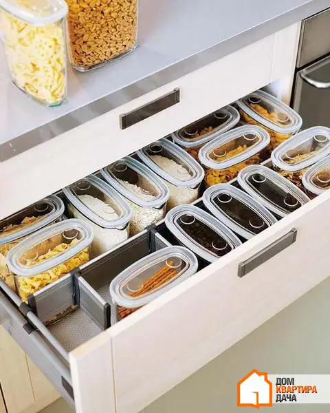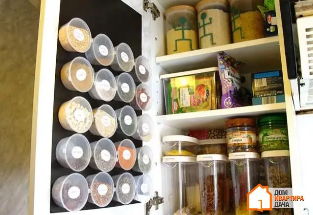 柜门上的挂钩和附件、容器以及迷你架——记住每一厘米的空间都可以聪明地利用。不仅因为厨房空间有限,而且确保容易取用所需物品。