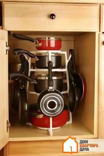 为了避免锅具叠放在一起,每次都要翻找底部的锅具,建议使用专门的支架或将额外架子放入橱柜。