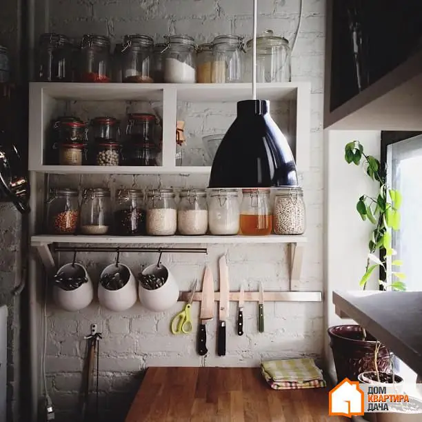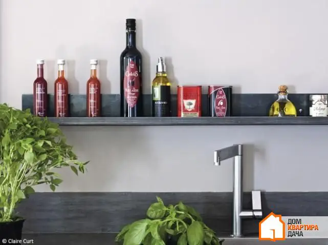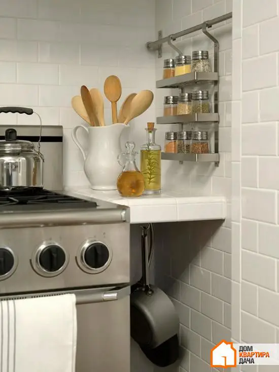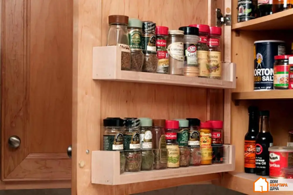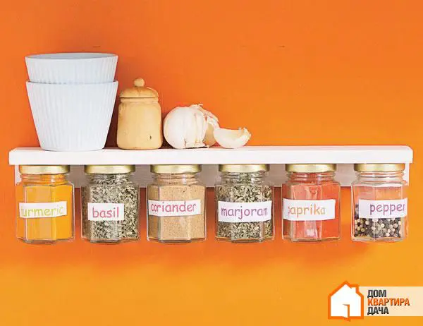 窄架非常适合储存香料和油瓶。为了防止架子上视觉杂乱,建议使用相同容器;最佳选择之一是相同尺寸的玻璃罐或瓶子。
