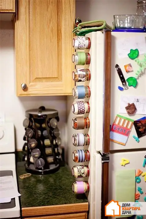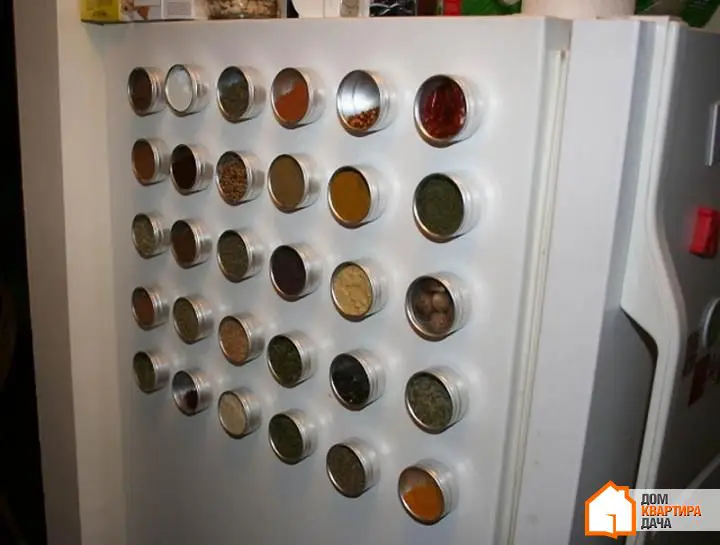 由于香料罐略重,可以利用冰箱侧面或柜内专门的磁性板来存储香料,只需在罐底贴上磁铁即可。