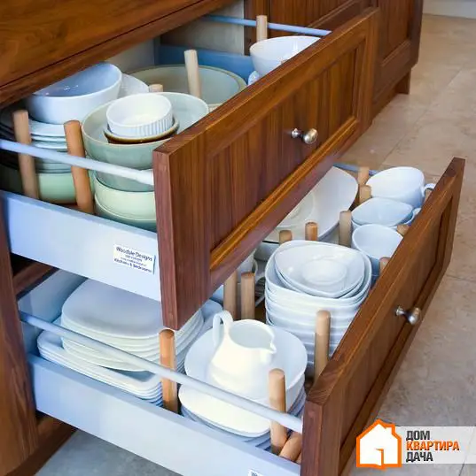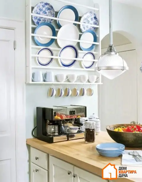 餐具不仅可以储存在封闭式柜子中,也可以放在窄窄的开放式架子上。