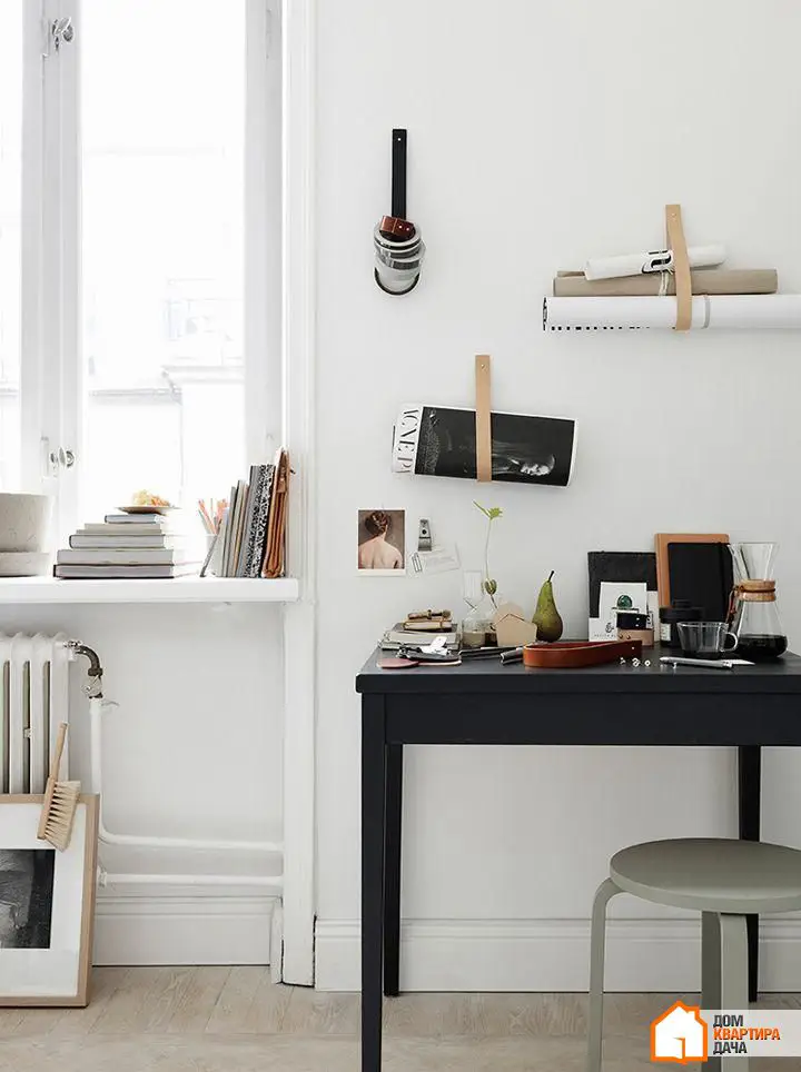 顺便说一下,皮革装饰可以通过简单的缝纫技能自制,成为常见材料的优秀替代品。衣物和配饰挂钩、窗帘夹、储物箱和衣柜外观可以依据室内风格呈现粗犷或活泼效果。