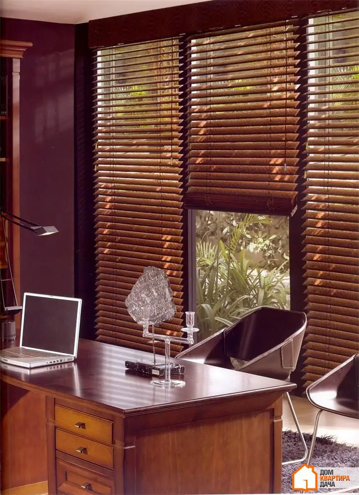 皮革也适合用于折衷风格的室内设计。在这种情况下,可以随想象发挥。皮革常被用于窗帘等——例如用作水平百叶窗。
