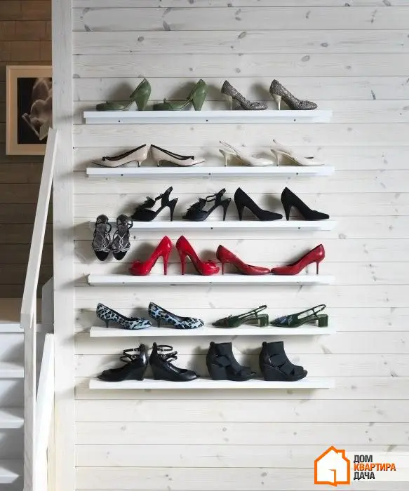 鞋子可能是最难储存的物品,特别是当您拥有许多双时。因此,除了标准搁板和鞋柜外,请考虑更具创意的选项:用于照片的窄搁板、挂杆或带有特殊附件的搁板。发挥您的创造力!
