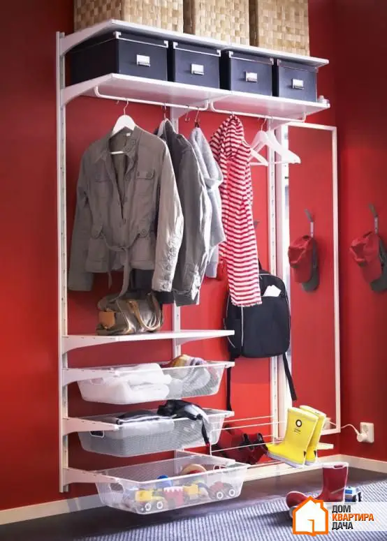 悬挂式搁板允许存放帽子、围巾和其他配饰。为了更整齐的外观,建议将它们存放在篮子或盒子里。