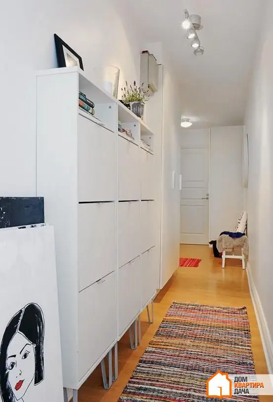 对于狭窄的玄关,理想的解决方案是使用薄型储物单元和鞋柜。这些可以让您存放大量鞋子,同时在玄关中占用最少的空间。