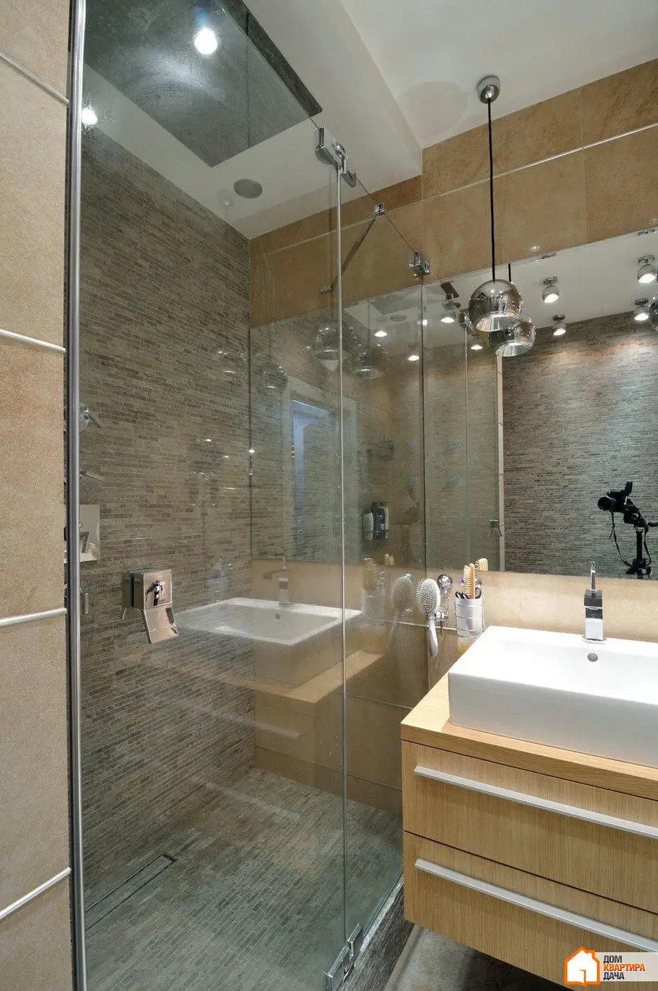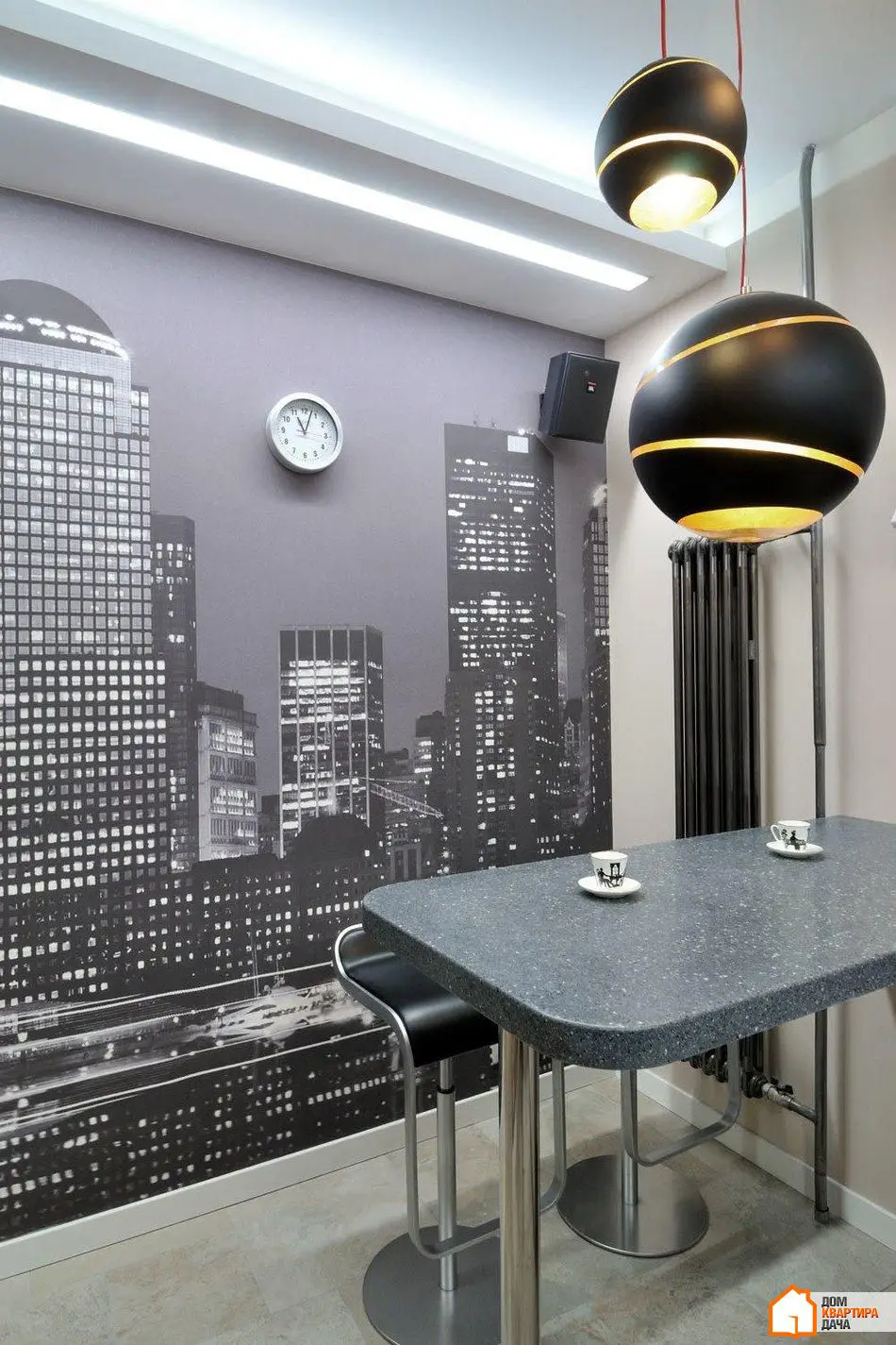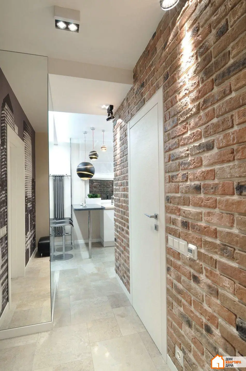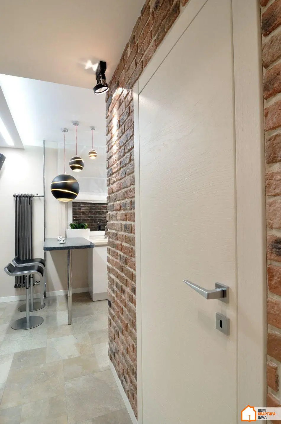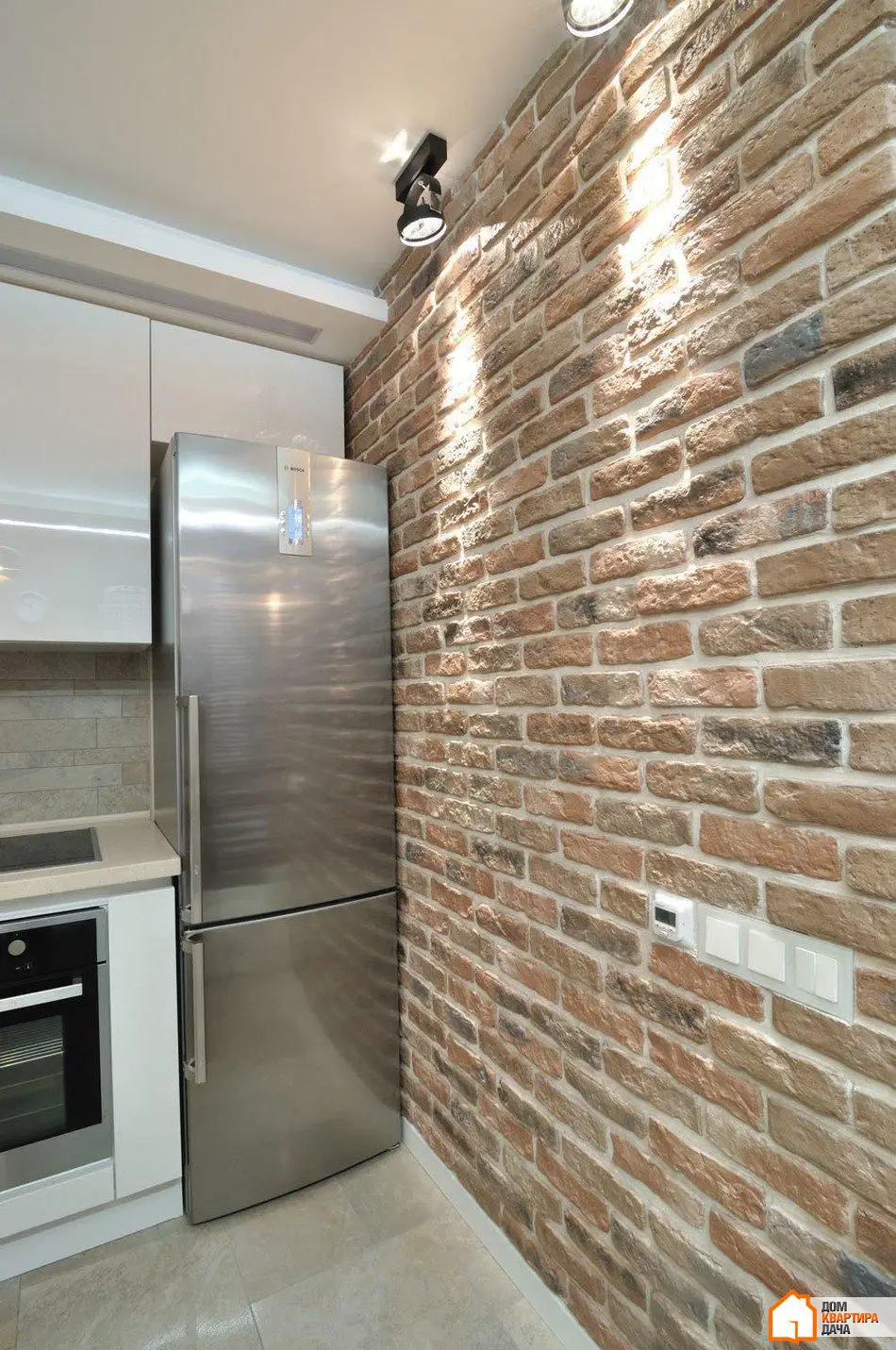 厨房和走廊设有Delta Light品牌的内置灯条,提供整体照明。此外还有该品牌可旋转的聚光灯,投射硬直射光线至饰面砖墙。这种光线突出了墙面的表达性纹理。厨房中的重点是Terzani品牌的Bond球形灯具,位于吧台上方,照亮其表面并成为极佳的装饰元素。所有照明设备均在俄罗斯从经销商处购买。