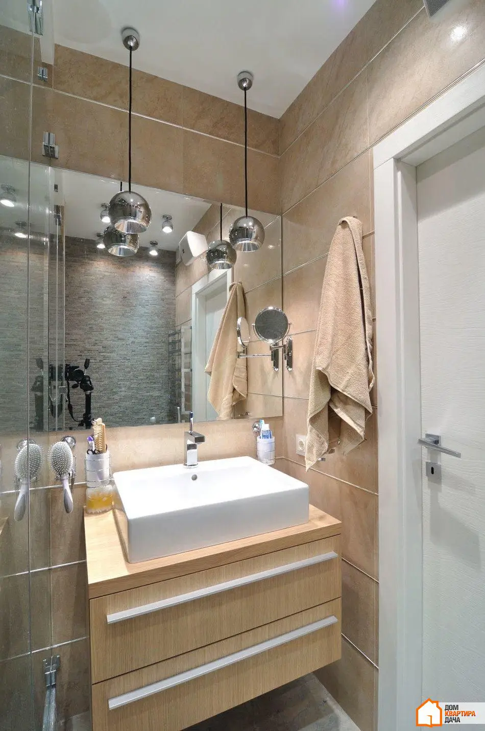 整体配色方案非常极简。基础色调选择了温暖的米色。厨房、走廊和卧室的部分墙面涂成了这种颜色。装饰色是走廊和厨房中砖红色的墙面。