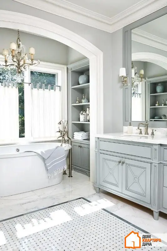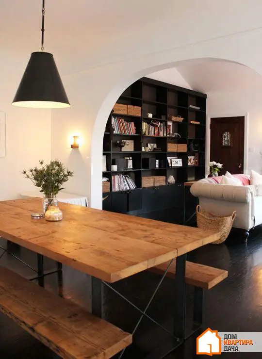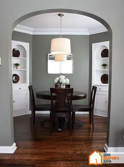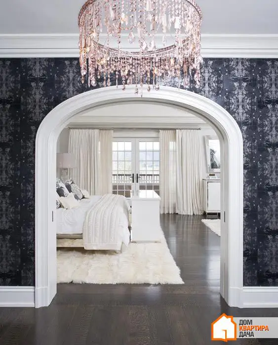 拱门同样被融入室内设计中,以避免占用门洞开启所需的空间。此外,拱形线条可以平衡极简主义风格中尖锐的直线,不会干扰室内灯光分布。很少有人知道,石膏板可以轻松弯曲。为此,需要在材料一侧多次划痕并折叠成多面结构。腻子有助于赋予拱门最终的形状。