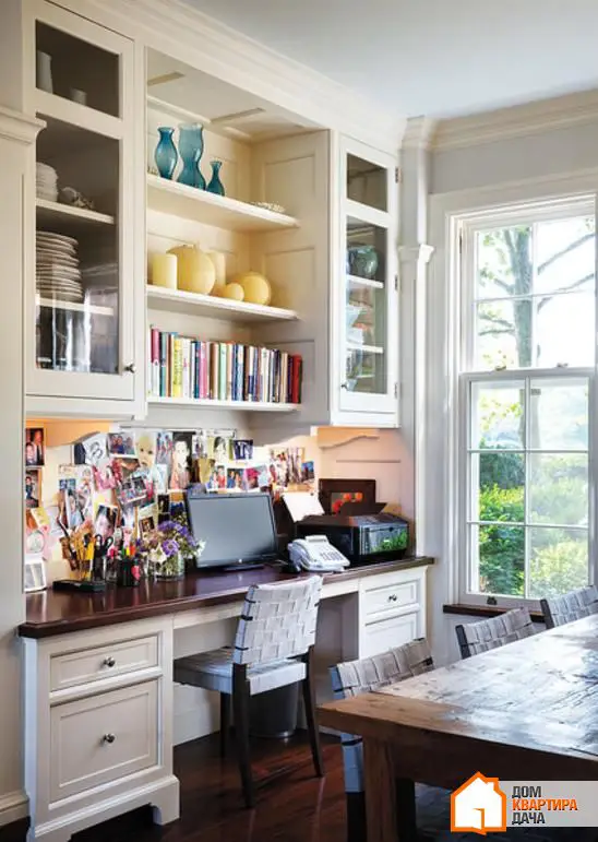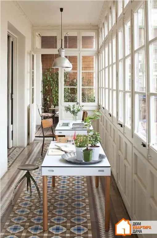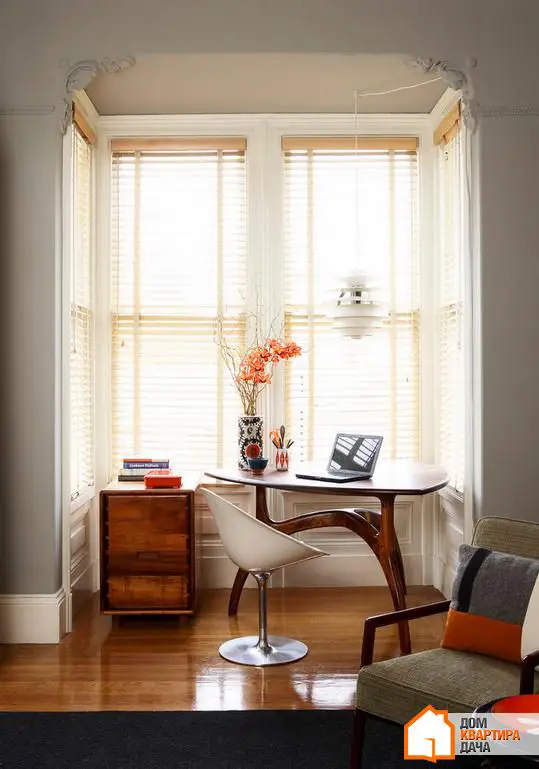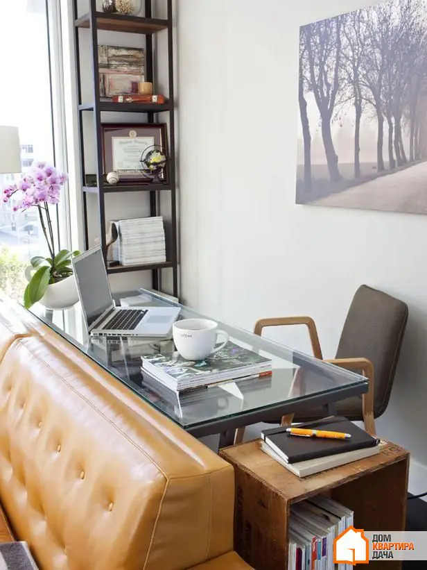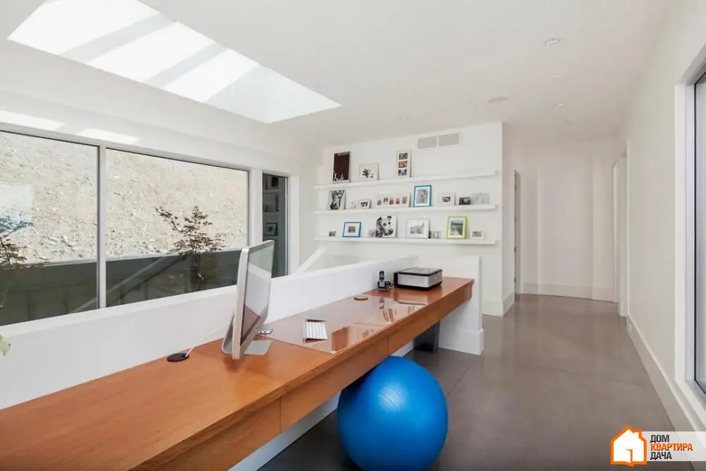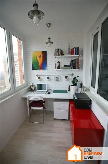 不要犹豫适当保温您的露台,您将获得额外的空间用于设置一个人甚至两个人的办公室。这种布置有很多优点:首先,节省了公寓内的空间;其次,白天自然光比其他房间更多;第三,露台相对隔离于生活区域,减少干扰以专注工作。当然,晚上在阳台上工作时,良好的照明是必不可少的——内置灯具和台灯。