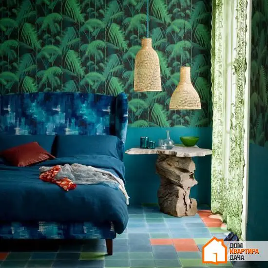 营造卧室中亲密温馨氛围的最佳方式是使用深色植物图案壁纸。在深色背景上的花卉图案在良好的自然光下会显得格外突出。