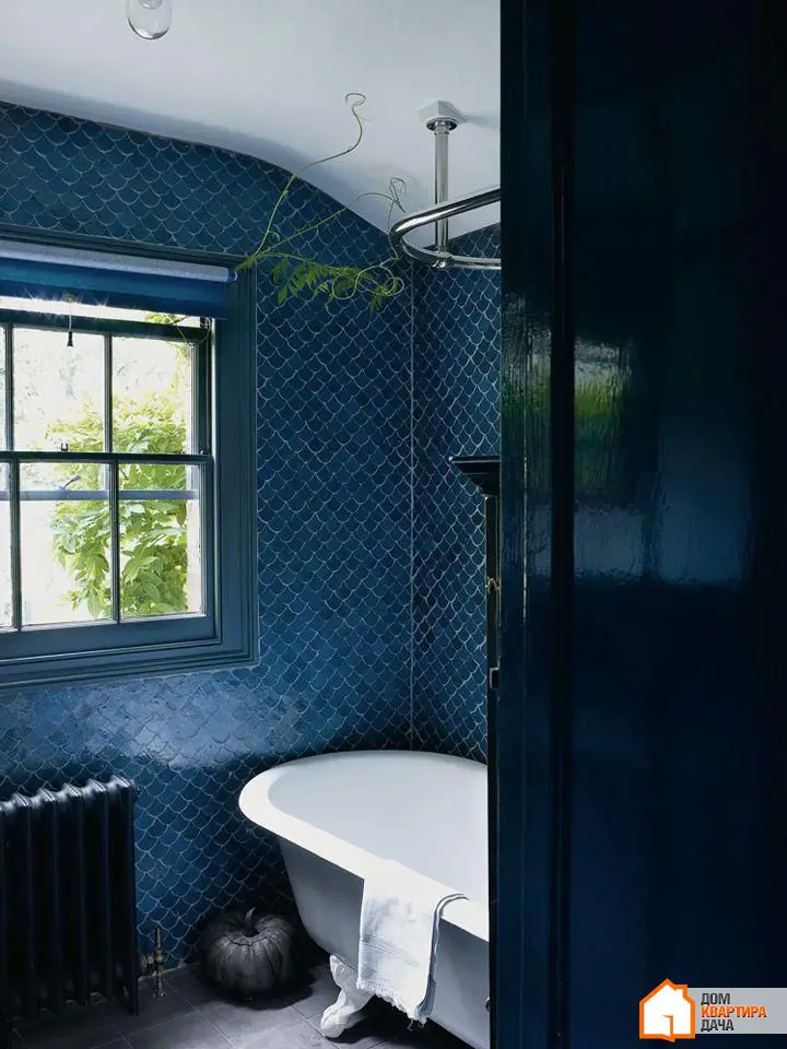 宁静的深蓝色是浴室的最佳选择之一,因为它与水相关。这不是陈词滥调,而是现代且相当容易实现的:瓷砖、墙面板,甚至只是深蓝色配件都可以帮助在您的浴室中营造优雅的氛围。