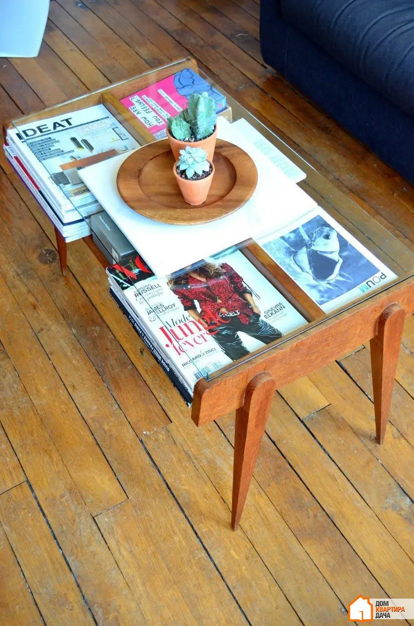 家具的选择体现了主人希望展现不同时代间的联系。在明亮的白色墙面和几何装饰元素背景下,由浅色略带磨损木材制成的书架与工作台尤为突出。整体复古氛围也因绿植点缀而增强:散布在公寓各处的低维护盆栽和花瓶仿佛是对过去世纪温馨家庭氛围的致敬。