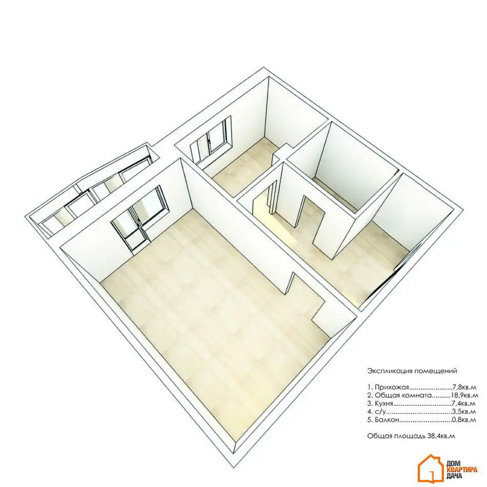 每个家长的梦想(以及他们的孩子)是让孩子拥有独立的房间。但在自然采光有限的单间公寓中,这非常难以实现。我们提出了一种相当复杂的方案,描述此方案必须从这种重新布局的缺点开始。为了在原厨房区域创建卧室并将厨房移至走廊。这很复杂,因为首先厨房没有自然光,其次厨房必须有适当的通风,第三,在“湿”空间(因为上方的公寓仍有厨房)下方设置客厅存在风险。然而,这仍然是可能的。因此,在室内墙上出现一个通往儿童房的开口。现有的开口稍作偏移和扩大,使烹饪区域不会与其余区域太隔离。由于部分厨房设备沿外墙布置,建造隔断创造了独立的入口区域。浴室布局使烹饪区域相当实用,走廊提供了壁橱。同时,浴室保持舒适宽敞。当然,这种方案更具有风险,但最终结果是一个38.4平方米的单间公寓变成了一个紧凑的两居室公寓。