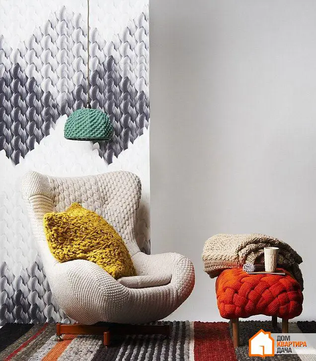 本季,请关注设计师最喜欢的覆盖厚针织面料的沙发、扶手椅和椅子。这些物品可以轻松在家制作。如果工作量看起来令人望而却步,可以从为沙发靠垫或毛毯编织覆盖物开始。您还可以通过为塑料花盆制作覆盖物来装扮室内植物。关键是不要被对比条纹所吸引,而是选择柔和色调的素线。最好专注于编织的复杂性和质感——越精致和纹理丰富,看起来就越美丽。