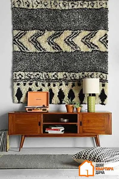这不仅包括沙发旁或壁炉前的小地毯。墙挂正回归流行。但当然,不是那些可能仍保存在祖母家的毛茸茸波斯地毯。流行的有带有民族图案或鲜艳几何图案的薄墙毯,以及挂毯。在墙上挂之前,可以将它们固定在特制木框上。这将防止下垂。