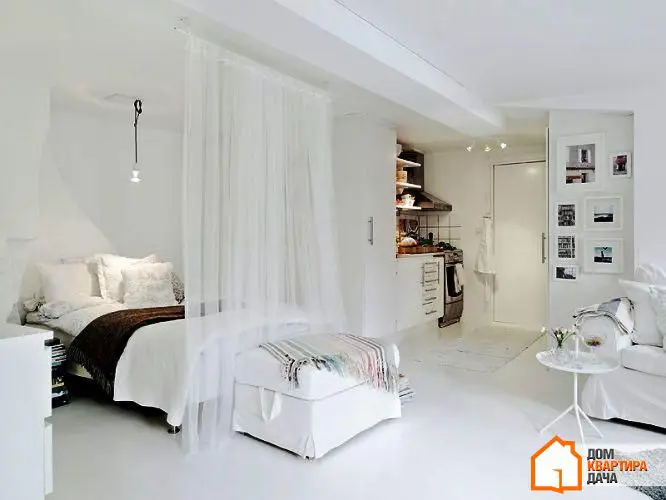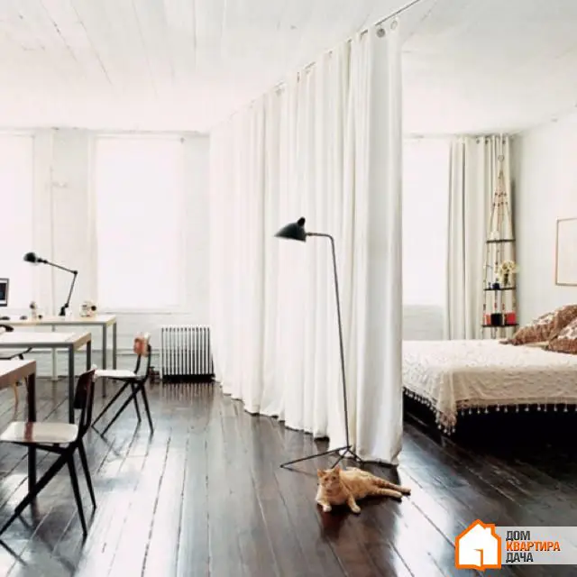窗帘不仅装饰窗户,还能在早晨阳光过于明亮时保护我们免受刺激。窗帘也可以成为空间分区的主要助手,替代门的作用。顺便说一下,为了这些目的,您可以使用购买或自制的纺织品屏风,其他时间可以轻松地将它们收纳在衣柜中。