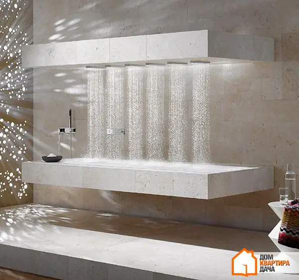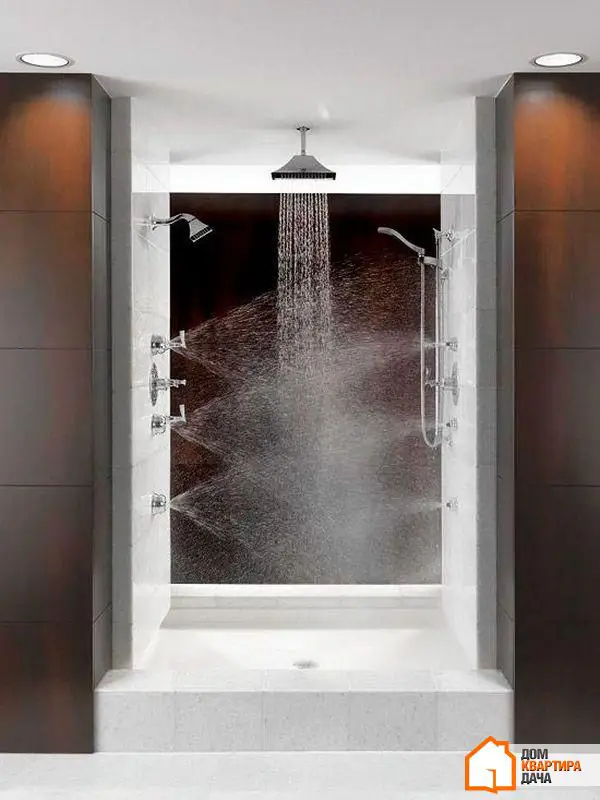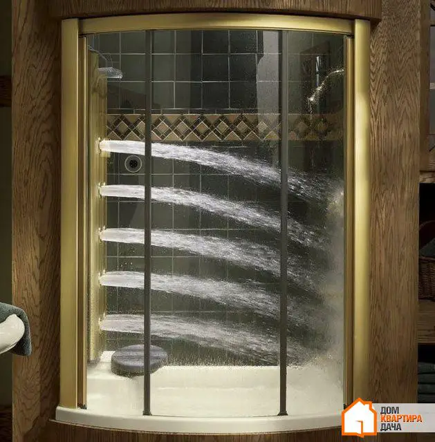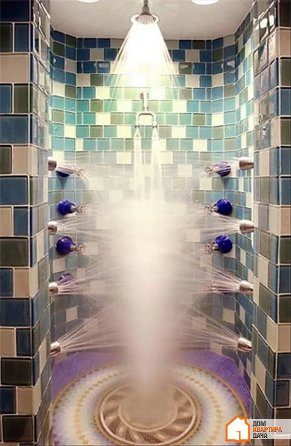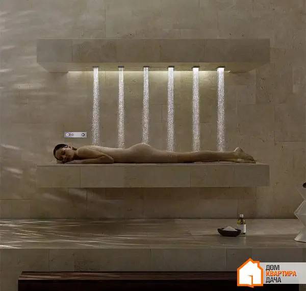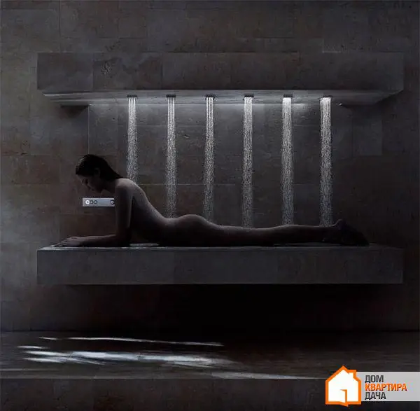 3. 当然,垂直淋浴也可以让人感到放松和有益。只需看看这个例子。水柱从多个喷嘴强力喷出,按摩身体,你只需要闭上眼睛享受即可。
