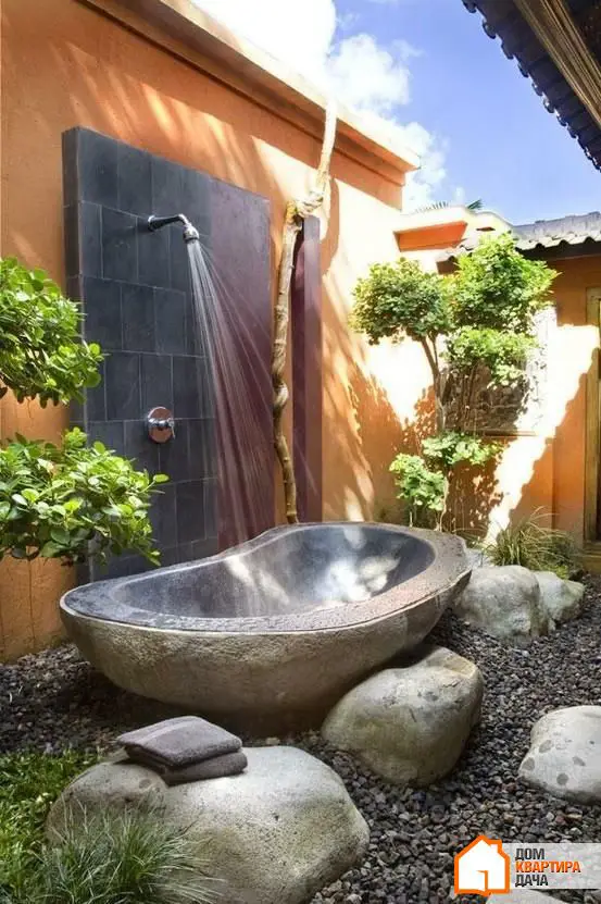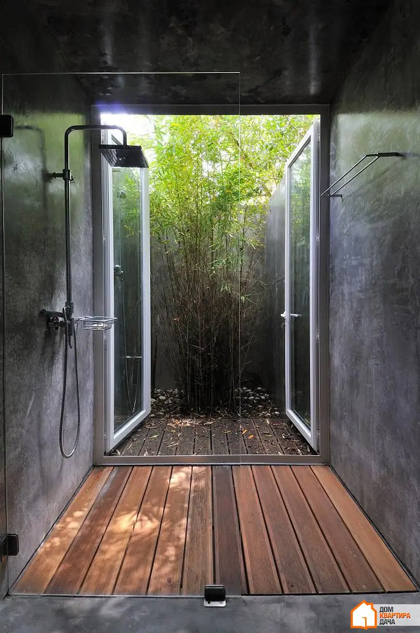 2. 在户外淋浴会是一件非常棒的事情。你可以为这种设计想法配备双层玻璃门,如果只是想欣赏自然景色,这些门也可以作为窗户使用。