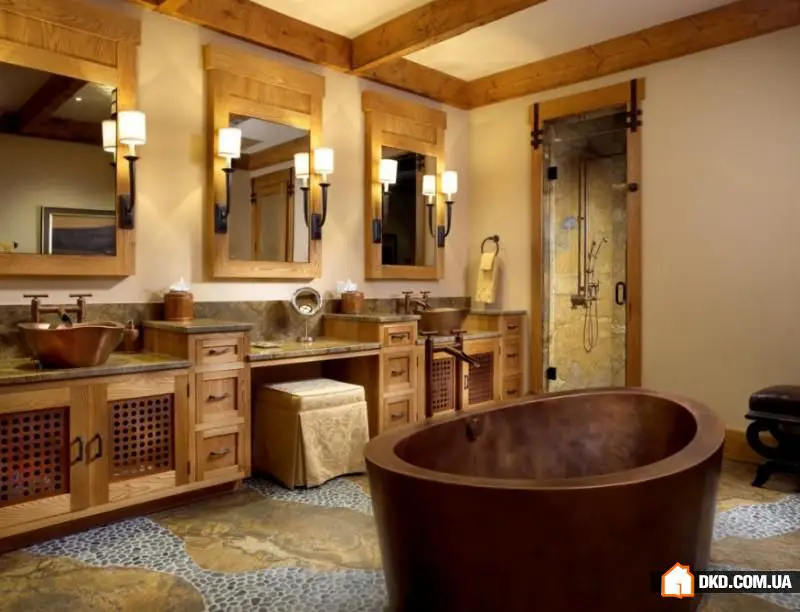 根据我们大多数读者的看法,度过冬日假期的最佳地点是远离城市喧嚣和工作周压力的自然温馨角落。山区或乡村中的一座舒适的小木屋或平房,邻近河流或森林,将是您想要放松并改变环境时的绝佳选择。与家人朋友共度的时光必将被长久铭记。在远离文明建造这样的小屋时,设计师和建筑师努力让每一个细节和房间都呈现出相应的外观,从围栏和大门到楼梯和窗户。 最受关注的是乡村别墅的浴室装饰,因为浴室比任何其他房间更能体现那种独特的温暖和舒适感,使乡村房屋在冬季脱颖而出。装饰元素可以采用任何风格,但木材或其替代品必须存在,同时需要大量暖色调柔软纺织品。如果您尚未决定今年冬天想如何度过假期、度假或周末,请查看我们为乡村住宅打造的冬季浴室设计特集,感受这种难以言喻的精神!