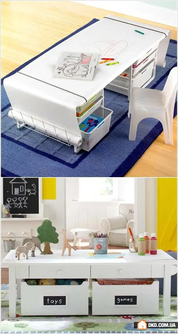 6. 带拉出式储物格的桌子或书桌也是很好的想法。