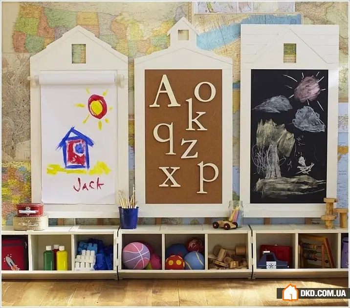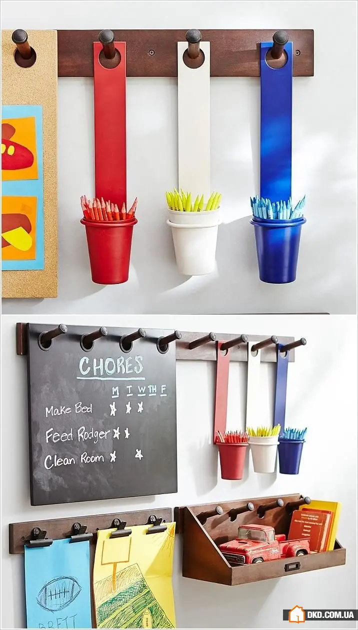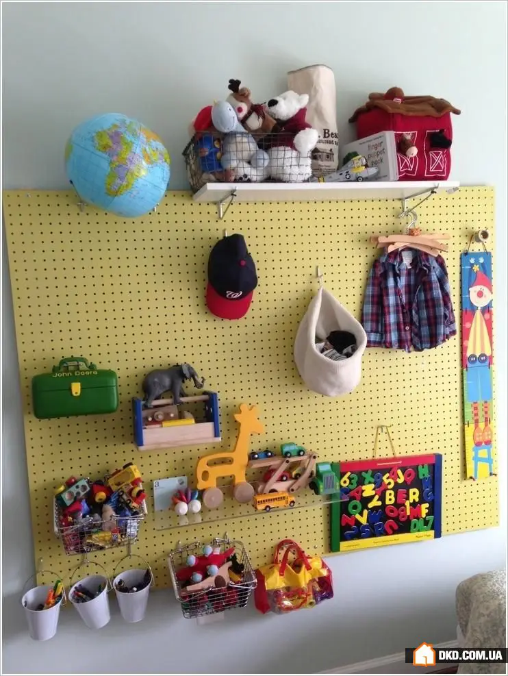 18. 使用各种挂钩板作为儿童房的设计元素。