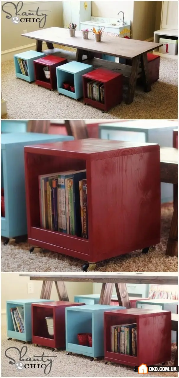 11. 设计一个绘画角落,使用空心凳子作为存储必要物品的储物箱。