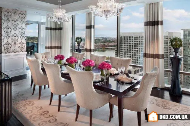 餐厅区域,就像厨房一样,在现代生活中通常与客厅区域位于同一空间。