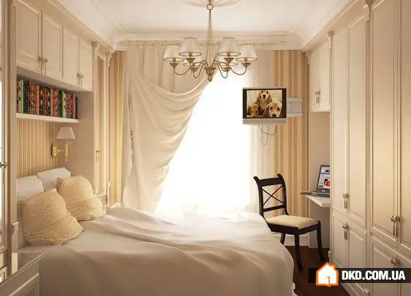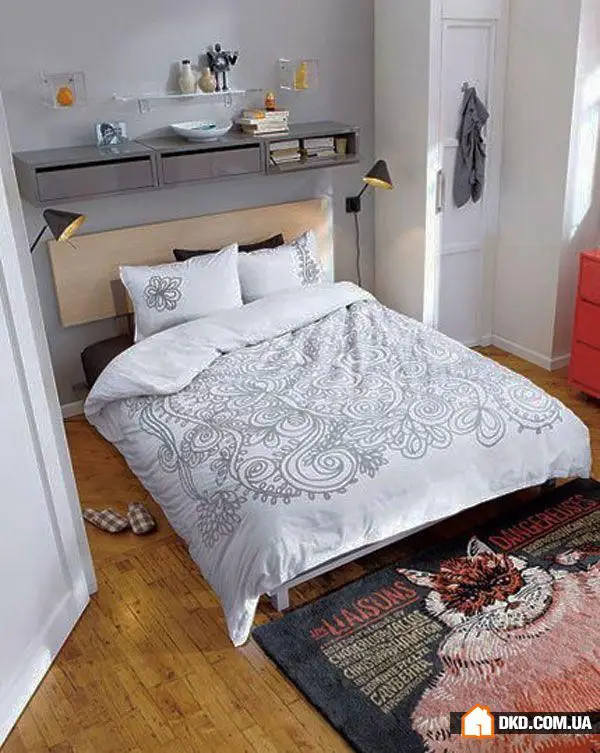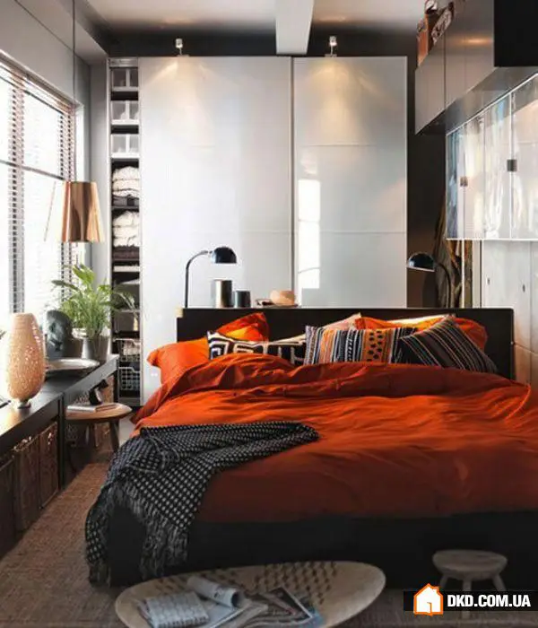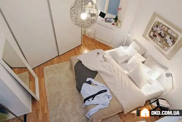 记住,浅色在小空间中比深色更显眼。无论一张大床看起来多么吸引人,但要记得它会占用卧室大量空间,因此最好选择较小的床,并将剩余空间更有效地利用起来。最重要的一点是,在小卧室中尽可能多地使用镜子,这样它会感觉更加通风和宽敞。
