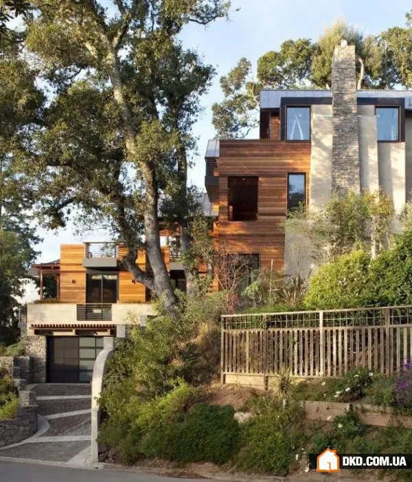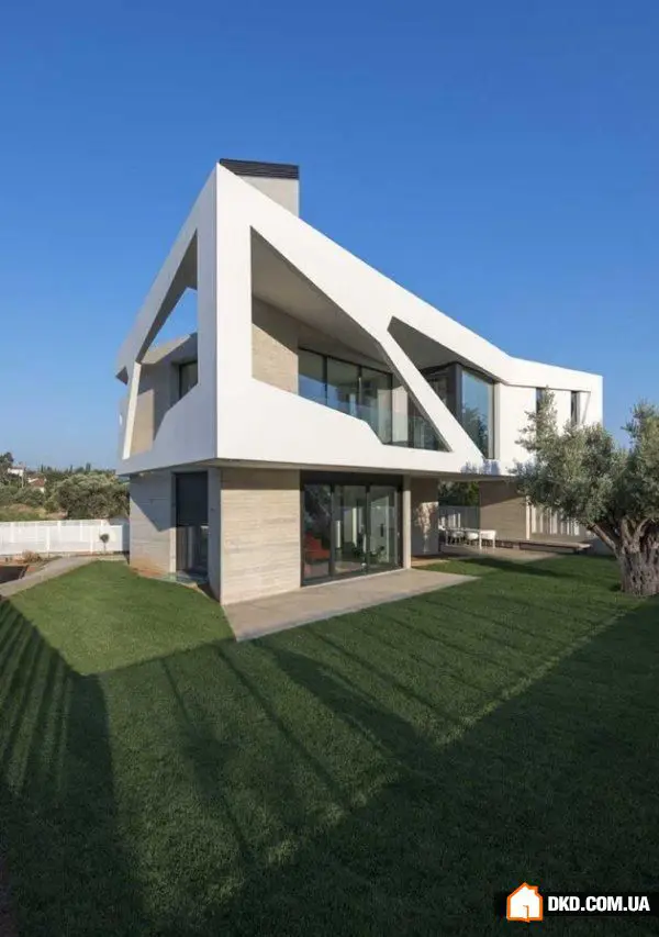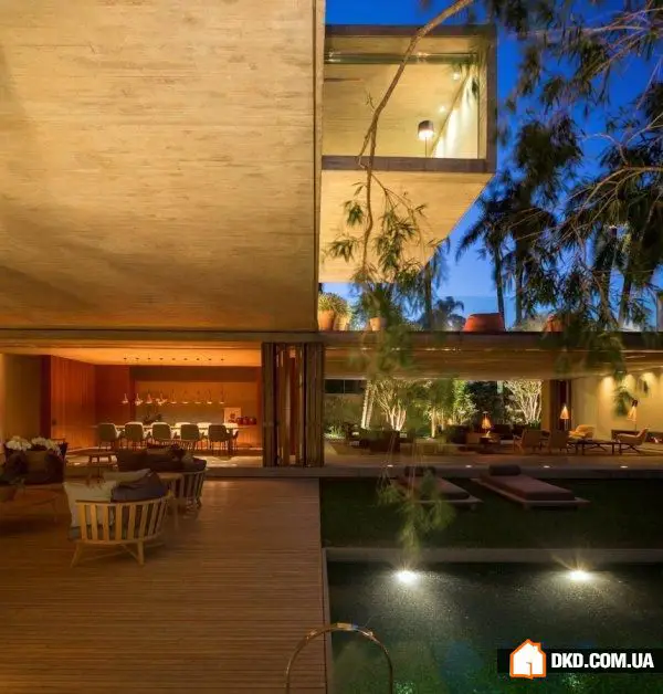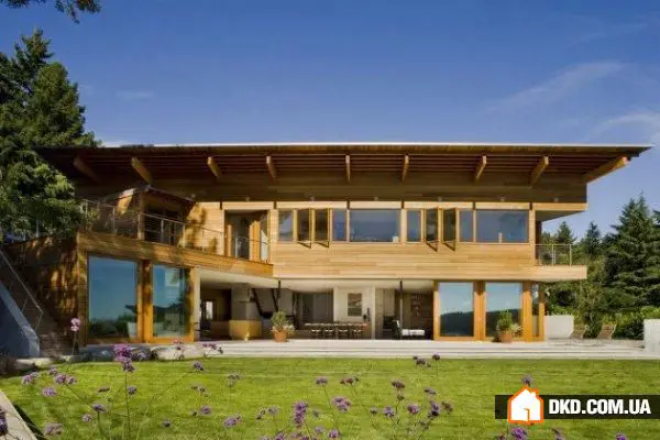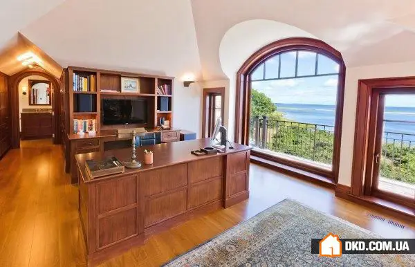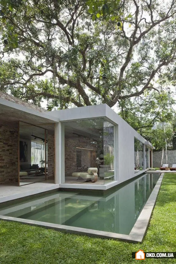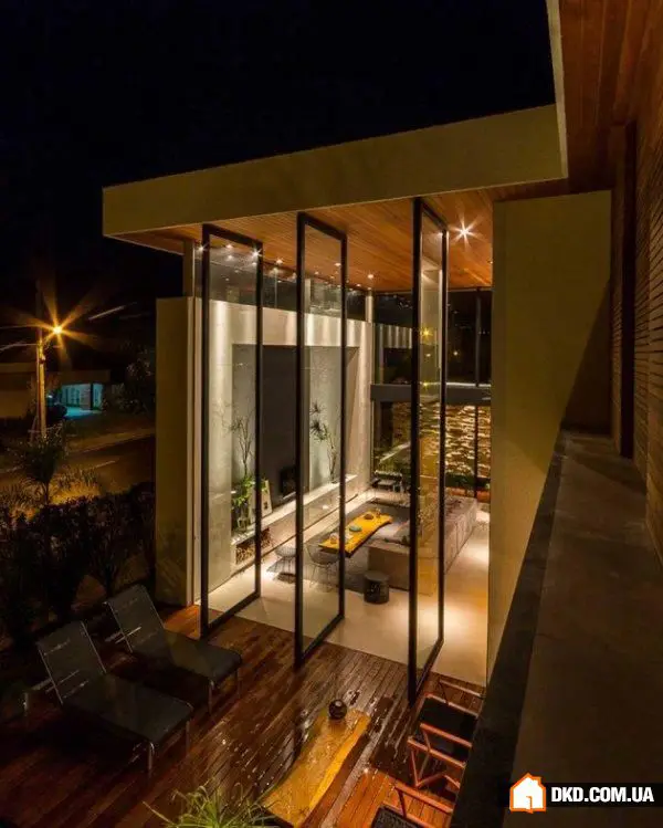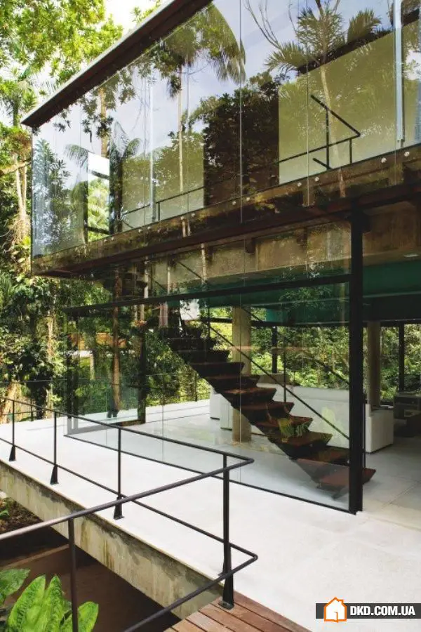 鲜艳红色椅子在极简室内与窗外难忘景色完美搭配。
