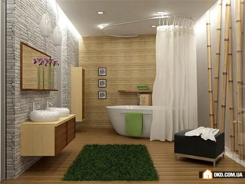 完成材料偏好天然材质:地板上使用石头或陶瓷砖;墙面使用色调砖或木材。家具则为木质或藤编材质。