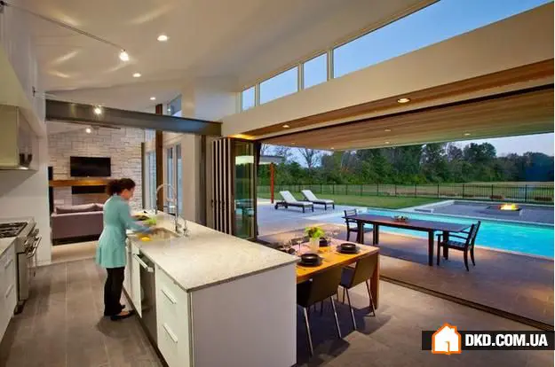 27. 使用大型折叠窗甚至墙壁,让你的厨房变成夏日厨房。这也是组织户外庆祝活动的好选择。