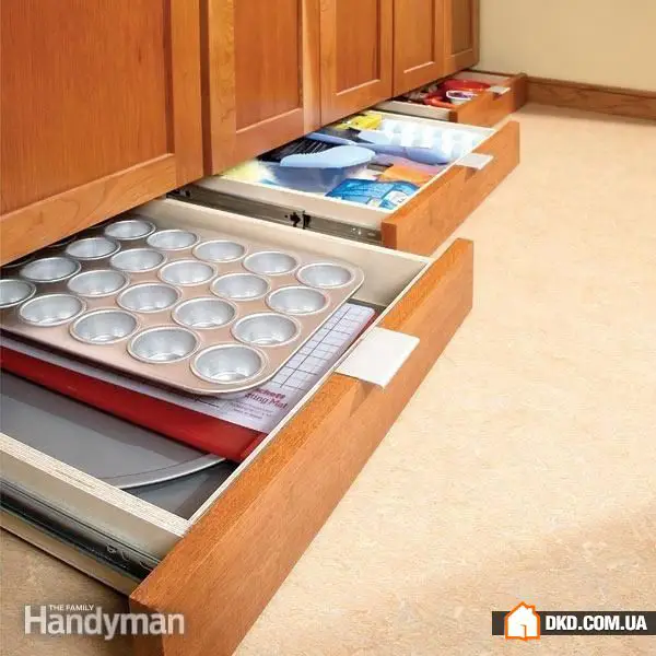 11. 即使在家具下方也要高效利用空间。安装滑出式抽屉,你会惊讶于这样一个小空间能容纳多少东西。尤其是在厨房和浴室。