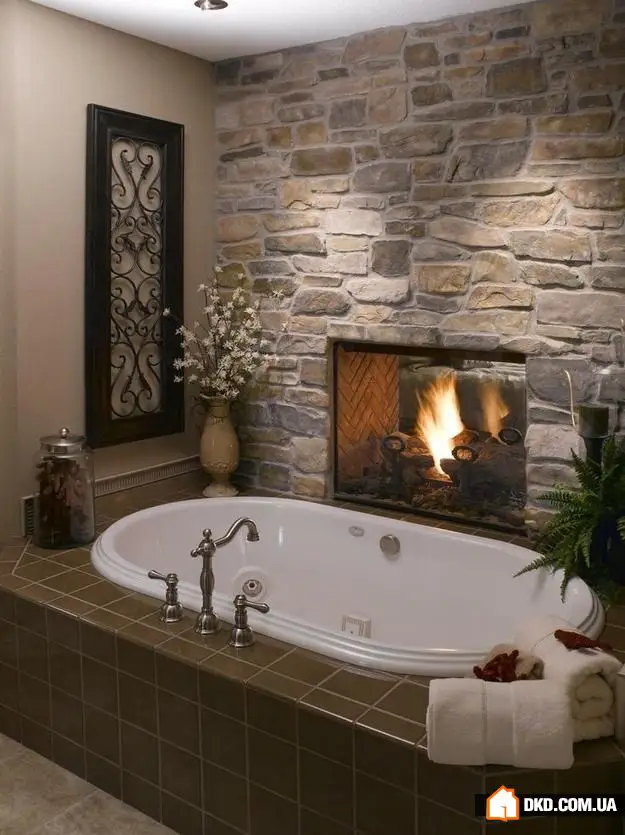 29. 浴室和卧室之间的双面壁炉是有效利用空间的好方法。谁不想在温暖的浴缸里享受火焰呢?