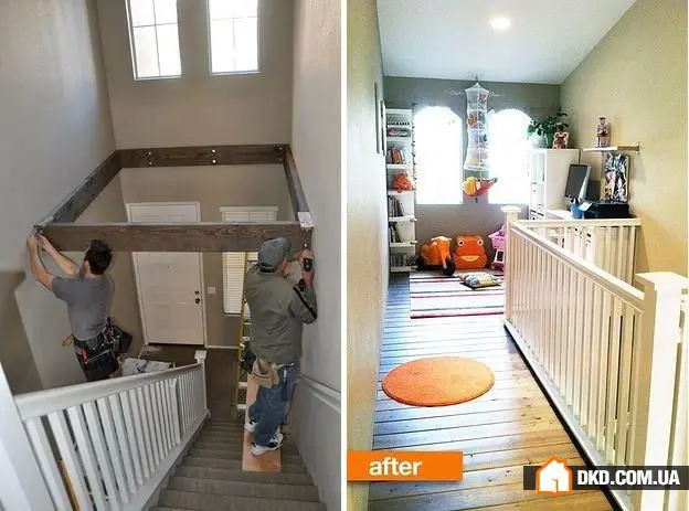 20. 在楼层间未使用的楼梯空间中建造一个额外的平台。