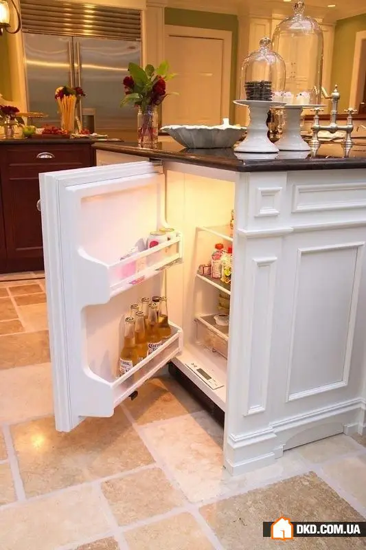 21. 在桌子上安装一个独立的冰箱来存放啤酒和饮料。