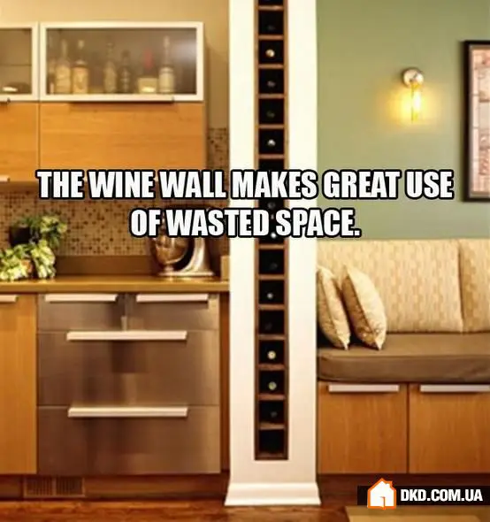 24. 通过在墙内放置酒瓶来合理利用空间。或者直接在厨房家具中制作简单的架子。