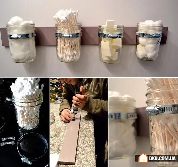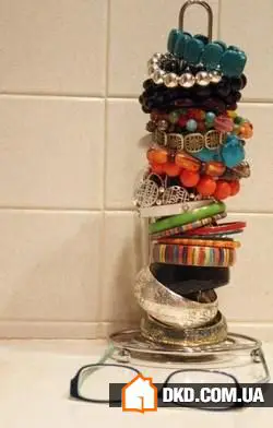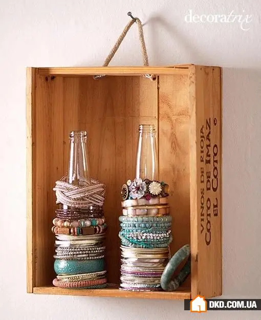 29. 玻璃瓶非常适合时尚地储存手镯和珠子。或者使用纸巾架来实现这一目的。
